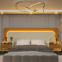 Cabeceira Box Casal com 2 Mesas de Cabeceira com Led Innova 100% MDF Off White/Nature