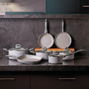 Jogo de Panelas Brinox Antiaderente Ceramic Life 7 Peças Marble Blend com Indução Cinza Claro